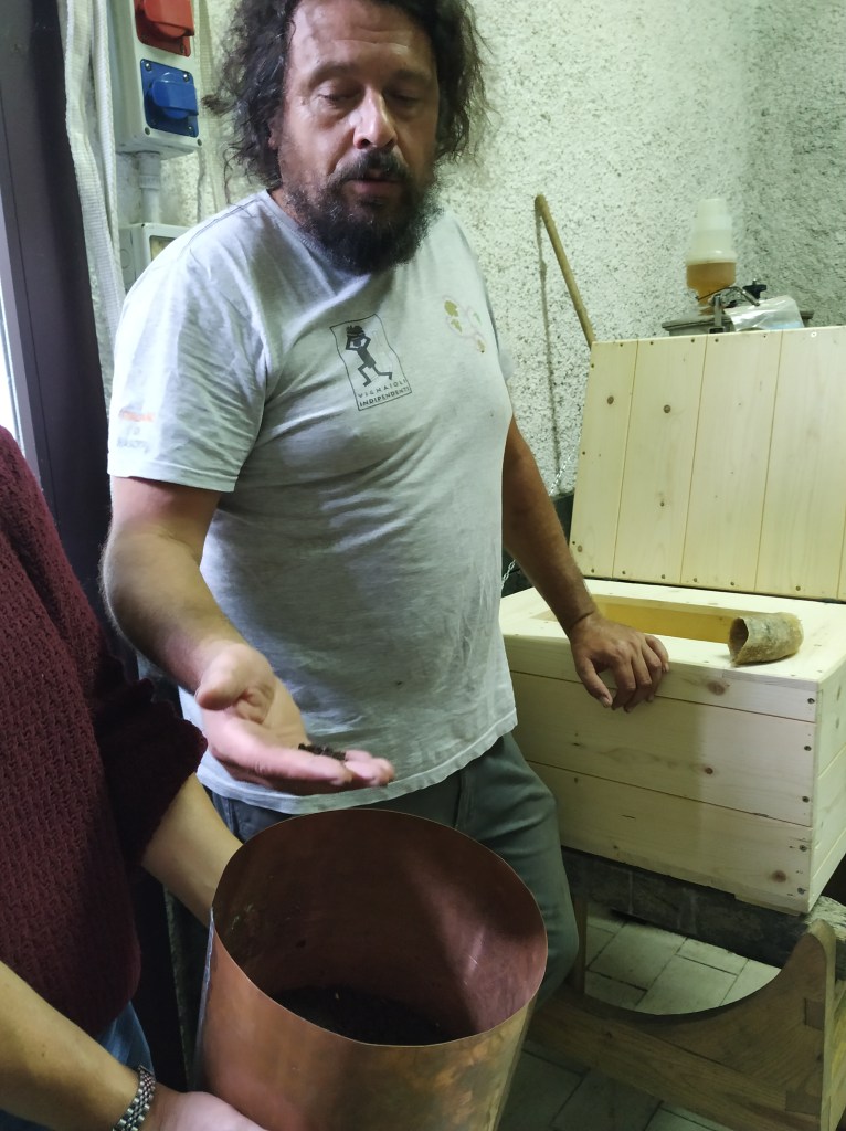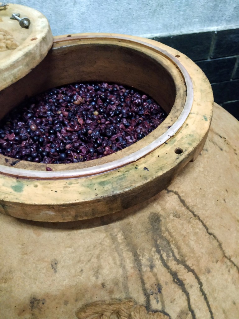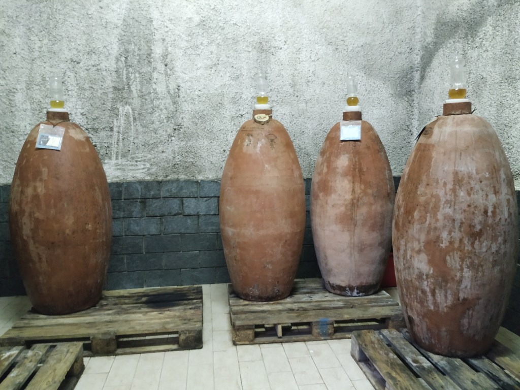 La filosofia del rispetto della terra è stata portata anche nei vini. Così Daniele ci ha accompagnato in cantina. Qui è stato curioso vedere la presenza di diverse anfore, che non sono legate alla tradizione, bensì all’origine. Un’origine lontana dal vino dei giorni nostri, che ci riporta a come veniva fatto e trasportato dagli antichi, appunto con le anfore. Il concetto base è quello dell’utilizzo della terracotta, ambiente naturale e soprattutto “vivo” che lascia respirare. Il vino in questo specifico microclima è costantemente micro ossigenato. Questo strumento è usato per l’affinamento di bianchi e rossi e da quest’anno per la vinificazione del rosso a base di granaccia. Finito la breve visita ci siamo cimentati nella degustazione dei vini di Daniele accompagnati da una sua frase: