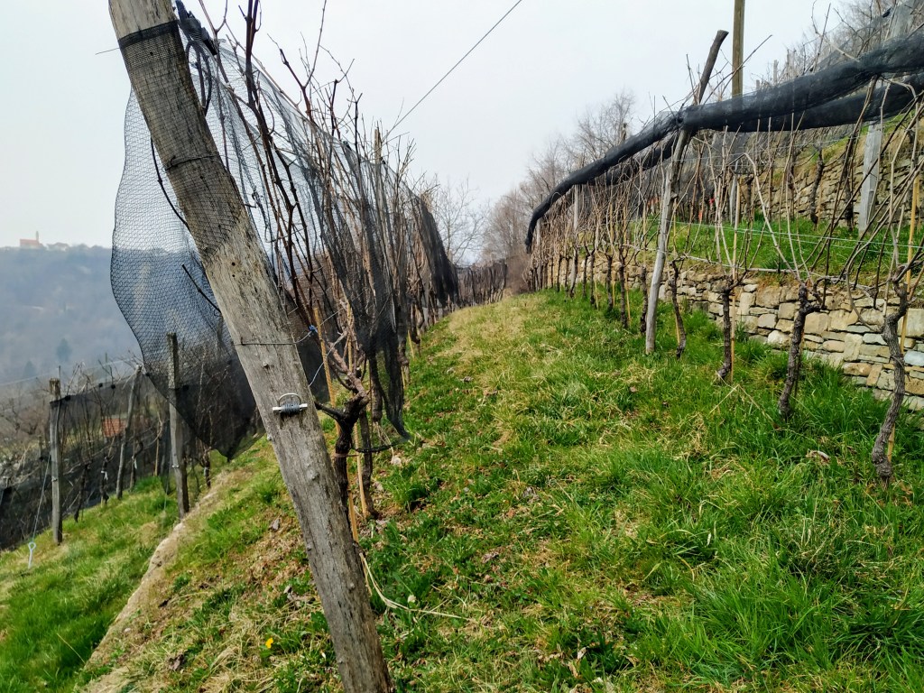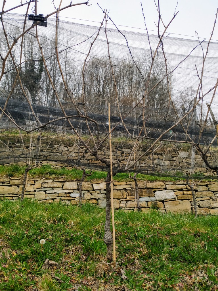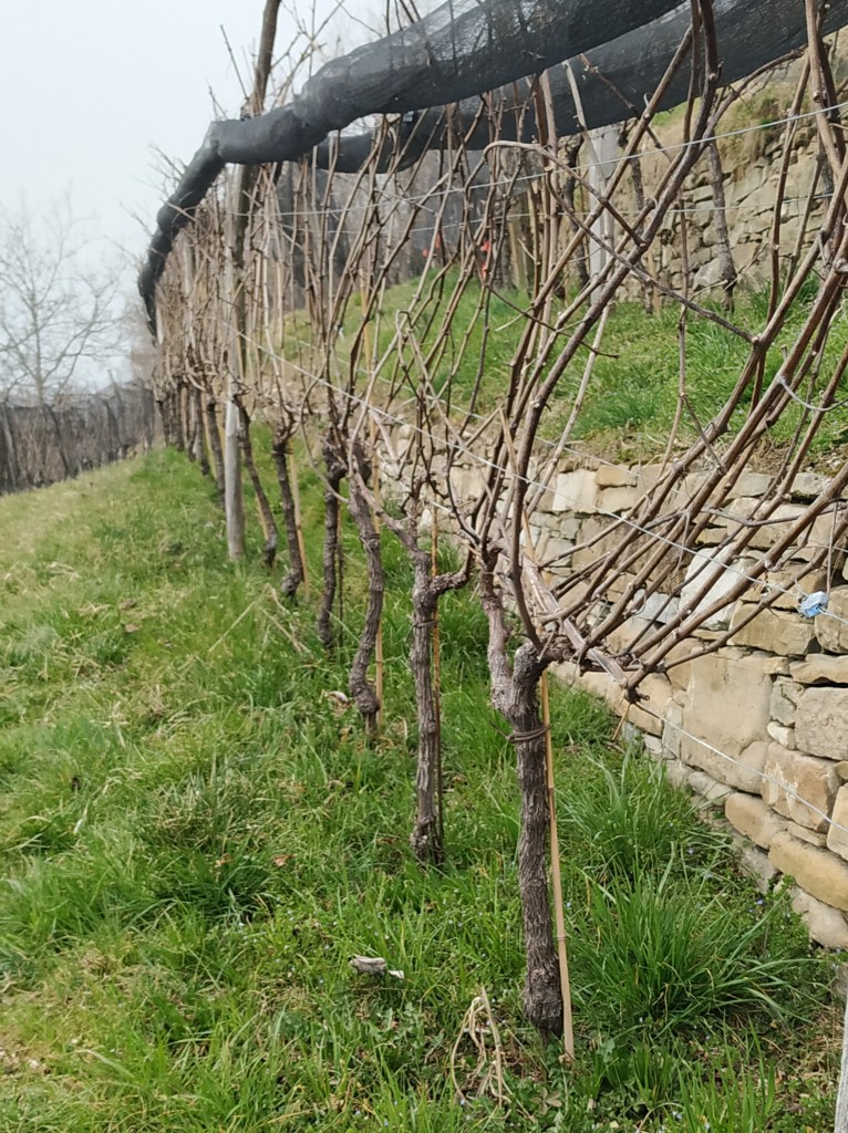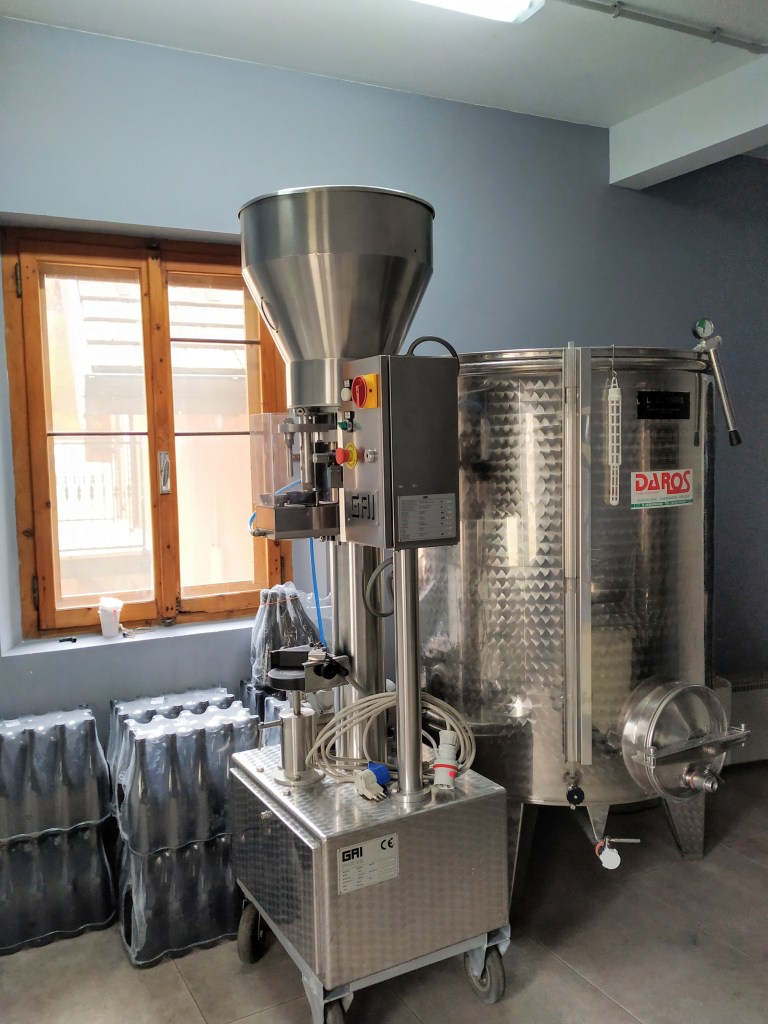 Questo vitigno come ben sappiamo è molto delicato, necessita di cura e attenzioni costanti, specialmente in vigna. Katja non dispone di un trattore, e lavora tutti i suoi appezzamenti a mano. Un lavoro che richiede tempo ed energie, ma che poi è ben ripagato una volta che l’uva arriva in cantina. Dopo un’estenuante selezione dei grappoli solo gli acini più sani ed in perfette condizioni giungono alla vinificazione. Ed è da qui che parte il nostro viaggio all’interno di questa realtà che ci lascia veramente sorpresi. I vigneti si trovano a cinquecento sessanta metri sul livello del mare, su un terreno molto fragile, come la varietà coltivata. Al giorno d’oggi le frane stanno diventando sempre più frequenti e si stanno manifestando eventi atmosferici che un tempo non c’erano. Un altro esempio sono le gelate tardive che colpiscono questi luoghi in primavera. Un cambiamento positivo è la presenza, da qualche anno, di una ventilazione costante, che aiuta a mantenere i grappoli sani a maturazione. La cantina è molto piccola, poco più di una stanza, e una volta entrati si respira fin da subito aria di Borgogna. Vi sono una piccola vasca di acciaio e un paio di barriques di rovere francese dalla val della Loira. Katja produce una linea base e due cru, chiamate vigna Corletta e Monte Santo. Per queste ultime va in vinificazione con l’acino intero, la macerazione è di circa un mese, con due o tre follature al giorno. Una volta terminato il contatto con le bucce travasa il vino in barriques in cui affina per dieci mesi e conclude con un minimo di otto/dodici mesi di maturazione finale in bottiglia.